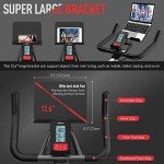 - 【Unique Updated Designs】① Unique 12.6” enlarged tablet bracket supports objects from mini to big (mobile, water bottle, books, tablets, laptops).② Unique resistance and urgent stop system: 5 stronger magnets for magnetic resistance + extra leather brake pad for safer emergency stops (no impact on normal cycling).